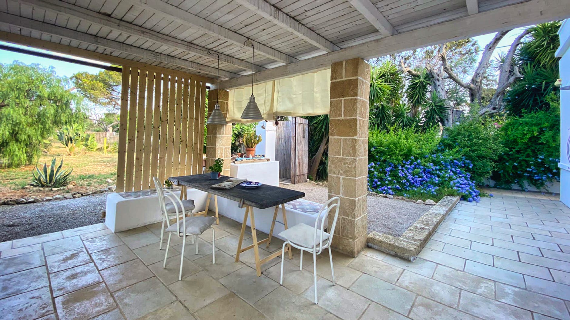 Composta da due corpi indipendenti, camera bagno e living, uniti da un patio coperto su cui si affaccia la cucina. Strategica per raggiungere le coste