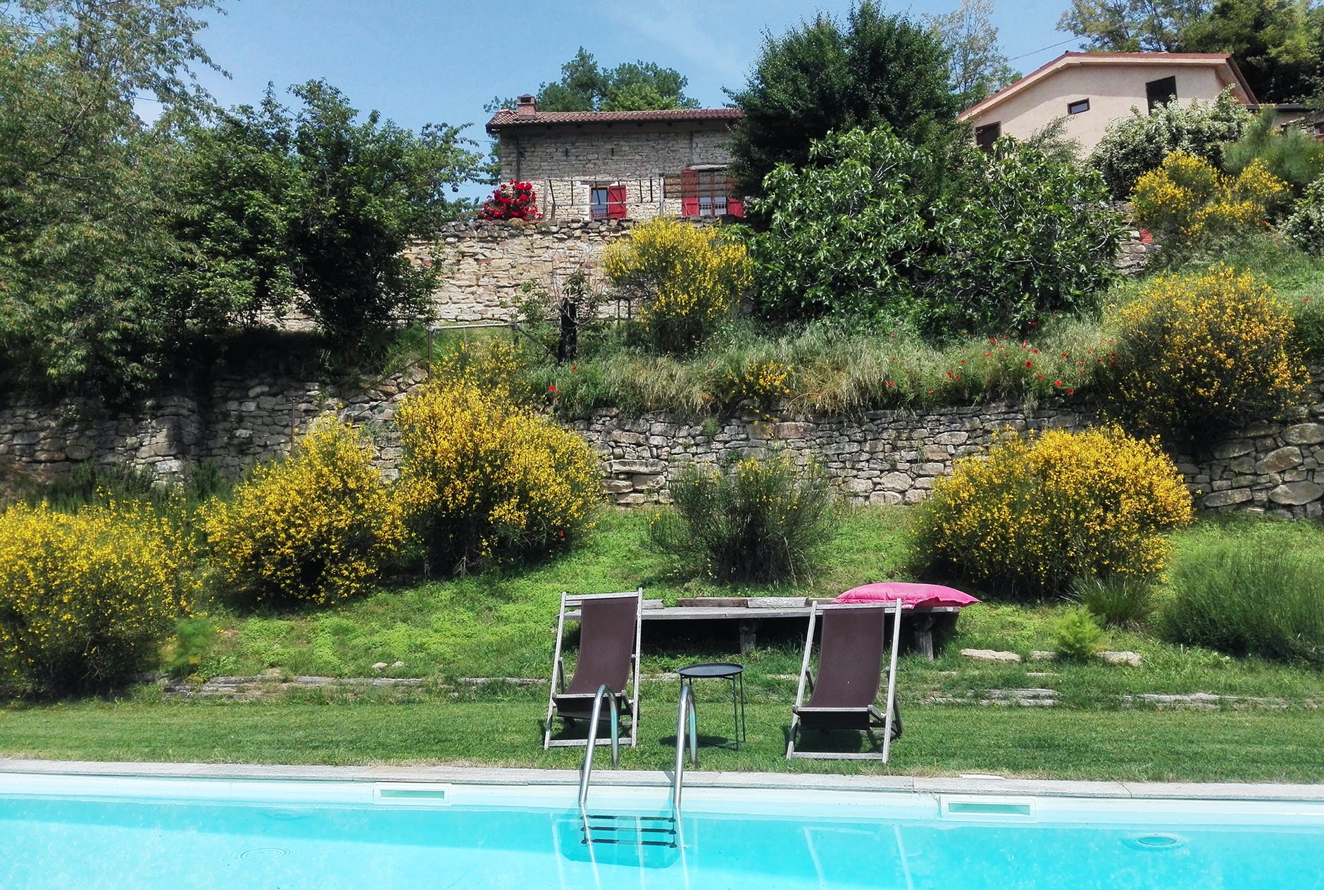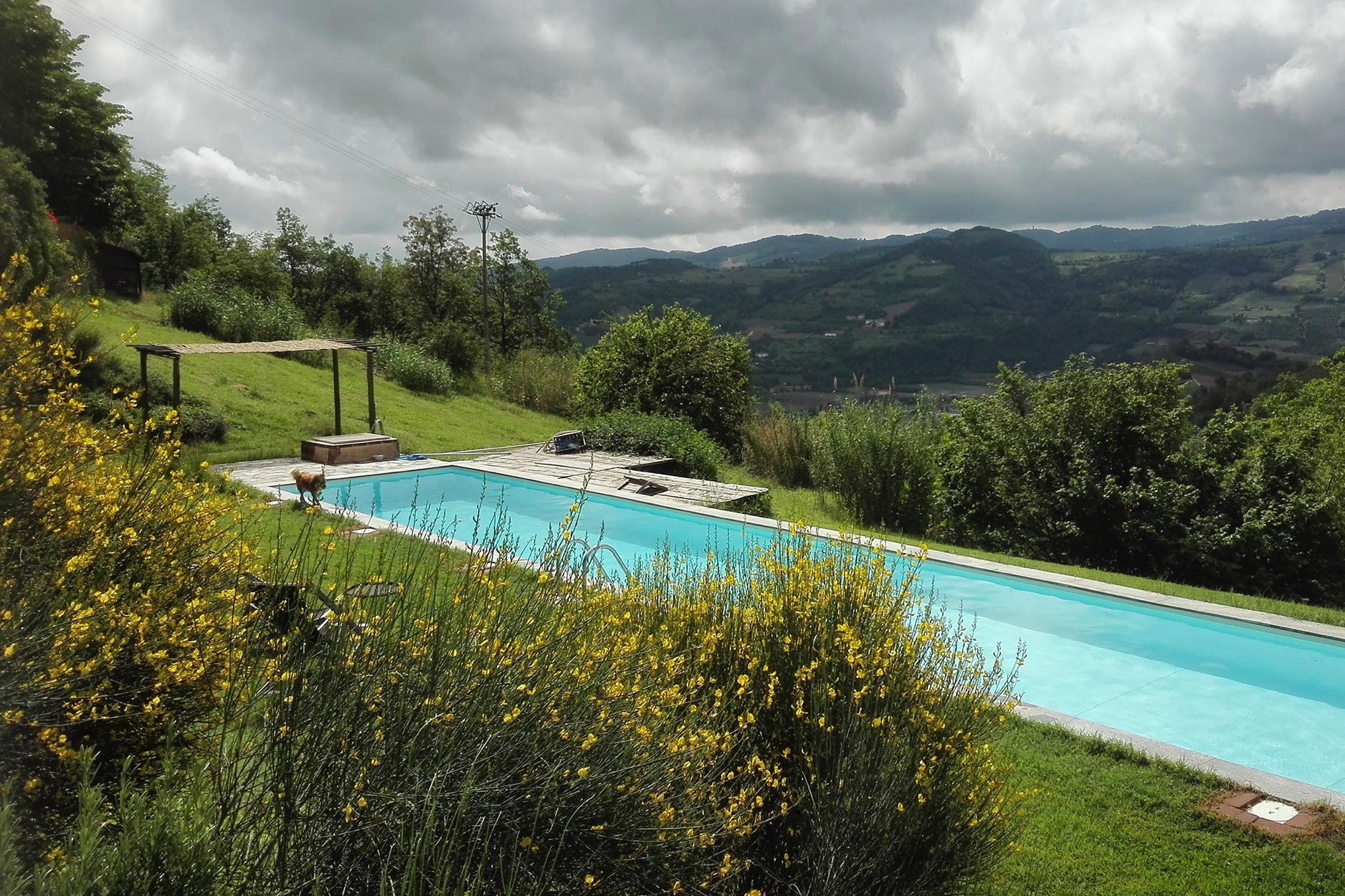 la lunga piscina (20 mt) e il suo giardino attrezzato con